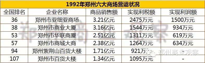 也正是这场商战,由此拉开了郑州的商业大发展的序幕。商战之初,六大商场通过竞争,实现了共赢,一年的总销售额达到了10亿元。商战也使得郑州六大商场中的五家进入了当年全国零售商业百强行列。