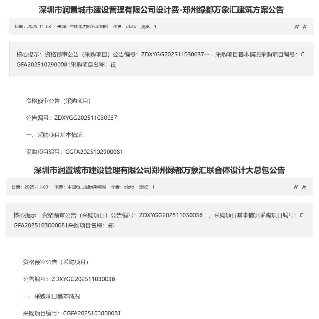 2025年11月3日,两则名为《郑州绿都万象汇建筑方案》、《郑州绿都万象汇联合体设计大总包》的招标公告信息一经披露,迅速引得行业内外的高度关注与积极讨论。