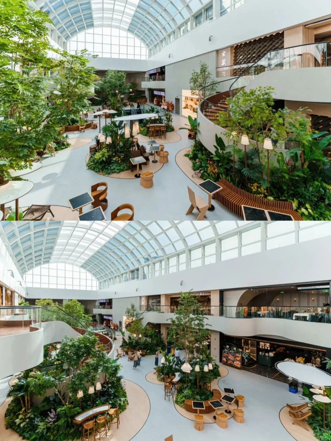 再例如前面提到的南京德基广场将一期7楼,在经历了动线不畅、体验单一、坪效偏低等一系列问题后,德基广场以“商业空间公共化”为内核,最终通过近一年的时间将这个低效的影院空间转型为集餐饮、社交、自然体验于一体的“立体花园”,实现了空间价值的重构。